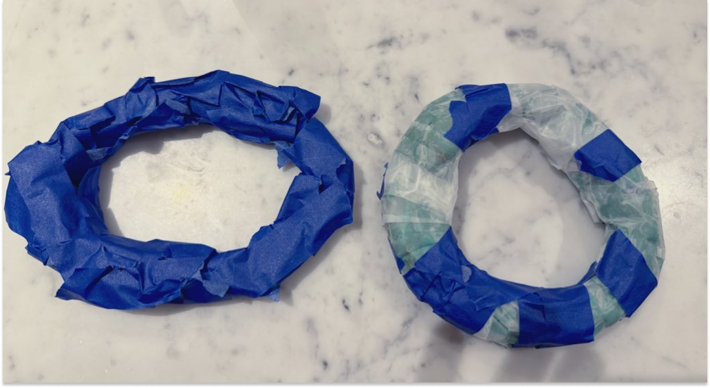 Over the next few days, he made a total of five Donut Hats in different colors and tapes. My favorite is the Orange and Green in Clear Packing Tape, but if that’s not your style, there’s probably one for you, too.