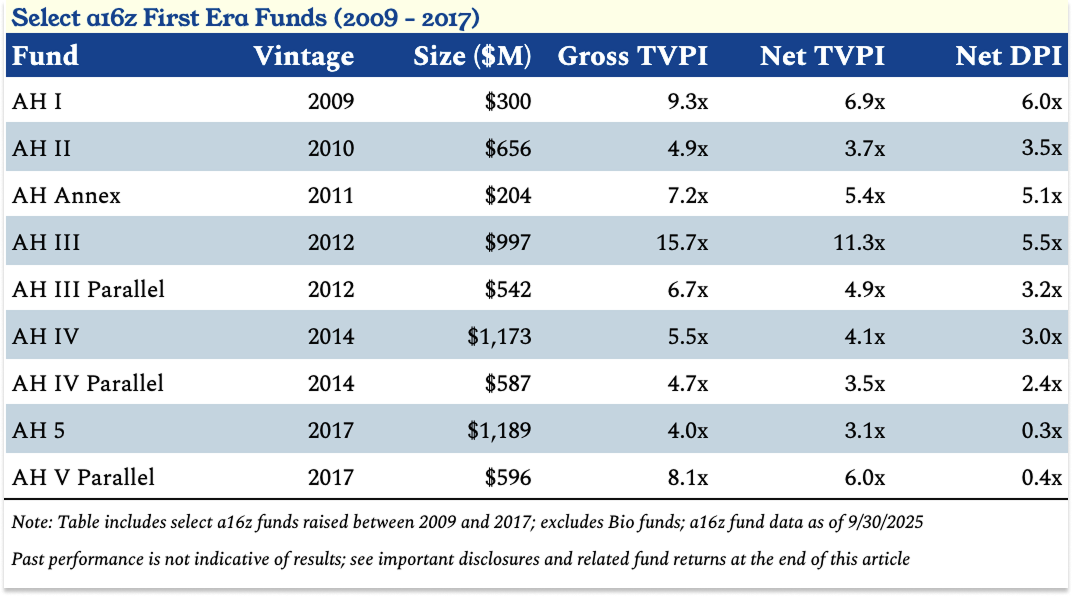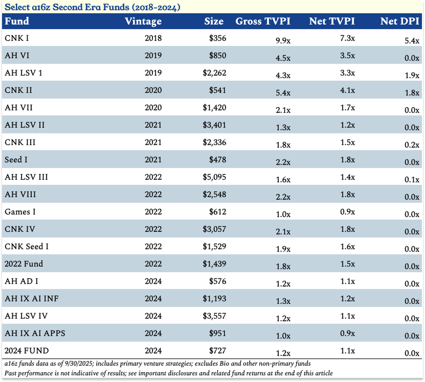 Of course, a16z has raised money and needs to generate returns. It needs to be great at this, and to date, itâs been exceptional. Not Boring has returns data on a16zâs funds to date that we will share below.