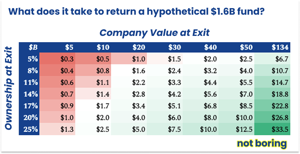 Like in 2015, when New Yorker writer Tad Friend sat down to breakfast with Marc Andreessen while writing Tomorrowâs Advance Man. Friend had just heard from a rival VC who wanted to get a word in - that a16zâs funds were so large, and ownership percentages so small1, that to get 5-10x aggregate returns across its first four funds, theyâd need their aggregate portfolio to be worth $240-480 billion.