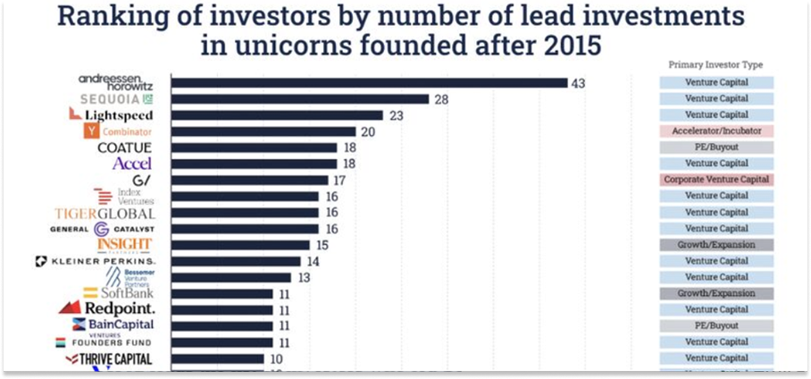 It has invested in 56 unicorns over the prior decade through its funds, more than any other firm.5