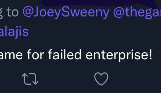 Garrett Scott, the founder of Not Boring Capital portfolio company Pipedream, tweeted about the wave of criticism that hit him and his company in the replies to this tweet from Just Raised podcast host Joe Sweeney: