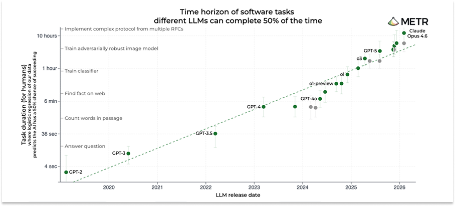 Just this week, METR’s Joel Becker wrote a post attempting to provide an intuition for the “Straight lines on graphs” argument. The point is that even if it doesn’t make sense, the line will continue to go up. We’ll figure out ways. But my point is that even if the models can think longer, it doesn’t mean that we will birth God. I think we’re going to end up with really excellent software, which is great, instead of an all-knowing and all-loving AI.