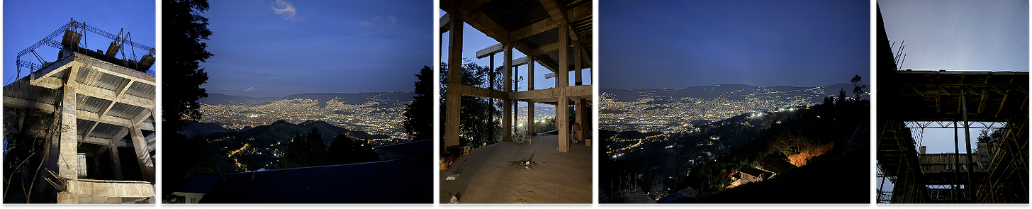 I could bring you with me to a night in late August at the top of one of the hills surrounding Medellín (not one of the fancy ones, I’m told), where Forrest is hosting a BBQ for his team, his dad, and me on the bare concrete slab that will become the 15,000 square foot home that Forrest taught himself architecture and AutoCAD to design.