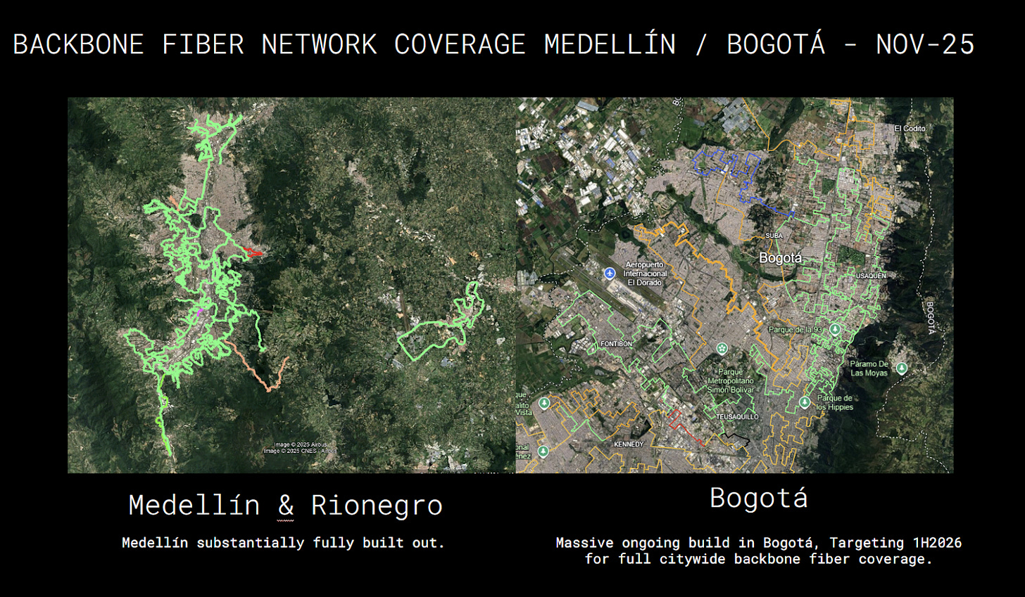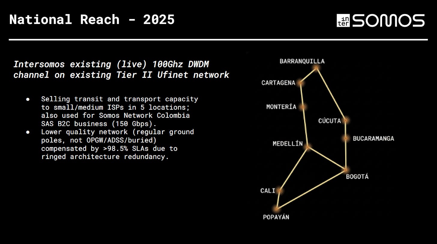 To wit: the Tier 1 and Tier 2 providers are not up to muster, so Somos now has a wholesale business, Intersomos, under which it’s building Hyperscale-grade backbone in Colombia, which it can use itself and sell to other ISPs.