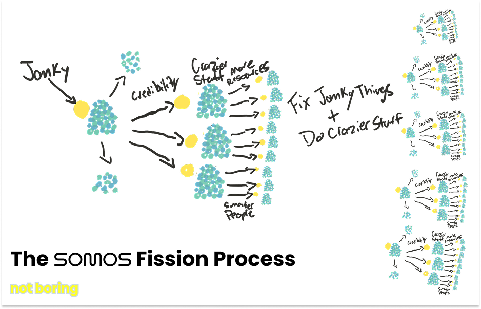 The technical architecture enables the talent architecture. Because Somos builds on open standards rather than proprietary systems, it can constantly upgrade individual pieces of the system without breaking everything. If someone smart comes in and says “we should actually be building the network on fiber instead of radio links,” which is something that happened, it can do that. “You get the benefits of vertical integration without needing everything to talk the exact same protocol.”