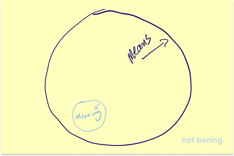 What I am after is the growth of both means and meaning. Not Boring started as a newsletter about technology businesses, but the main question is: how do we make being a human more amazing?