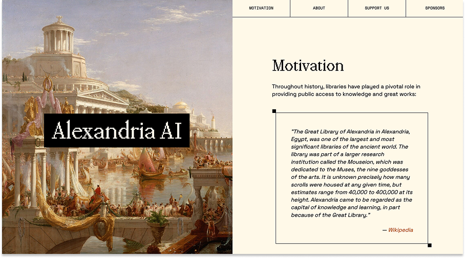 With all of that going on, how can he take on building monuments, starting a school system, building two new foundation models, and translating the top 1,000 off-copyright books into all commonly spoken languages with Alexandria AI?
