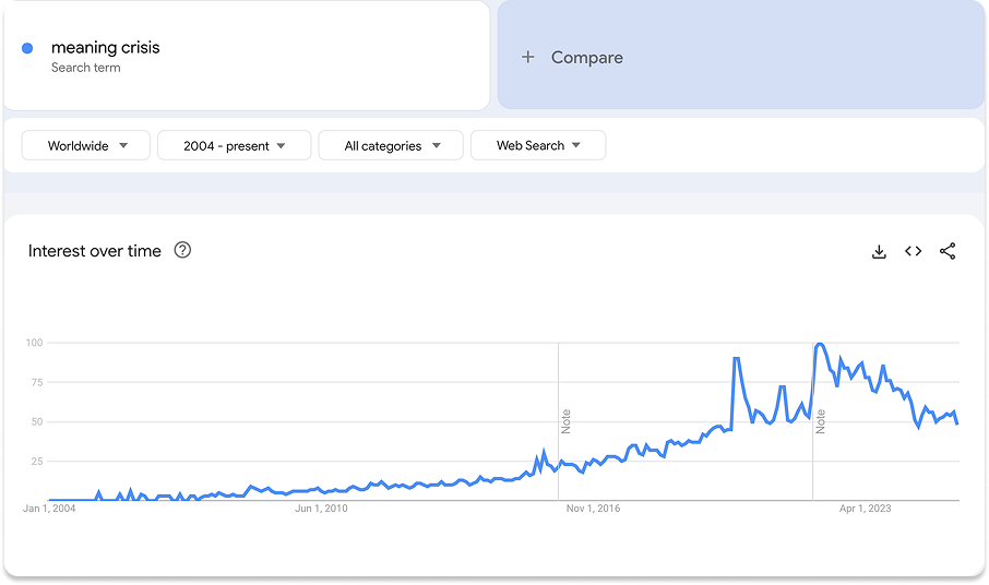 Separately, I’ve sensed a Return of Magic, a trust in intuition over numbers, a search for wonder instead of skepticism, and a very right-brained view of the “universe as alive, connected, and full of possibilities.” That there is a Meaning Crisis has been widely reported; over time, crises tend to resolve themselves. We will search for, and find, meaning.