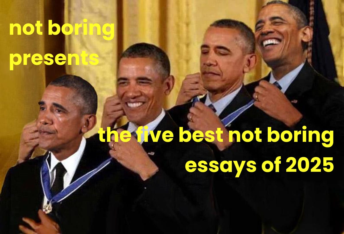 Next year, I’m going to lean hard into building a little world here in not boring. The first couple of years of the newsletter were about freshness and zeitgeist. This year, I found a deeper, higher-quality level. In 2026, I’m going to try to do both. Stay tuned.