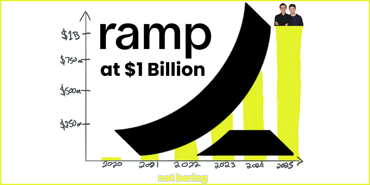 Ramp is the model. I first wrote about the company in December 2020, when it was valued at $300 million and doing something in the single-digit millions in revenue. Even then, it was obvious that something special was happening, and I invested both personally, before I had a fund, and then through Not Boring Capital.