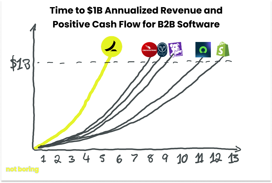 Among all the B2B companies who have crossed $1 billion in revenue at any speed while cash flow positive, Ramp has achieved this milestone years faster than anyone else.
