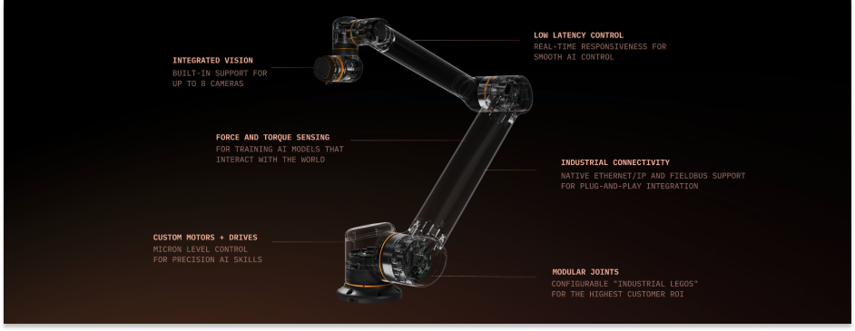Robotics is bottlenecked on data. We get paid to collect data by building better robotic arms for industrial use cases. These use cases are broader and larger than we anticipated. For each one, we deploy, learn, find edge cases, intervene, collect the data, and improve. This is necessary at the model level for a specific task, and it’s also necessary at the level of the system. And the only way we are able to do this quickly (or at all) is because we are vertically integrated.
