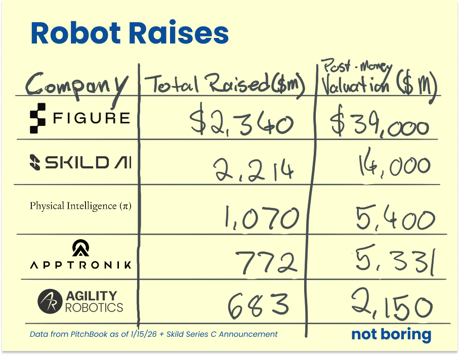 And the questions are very dumb! Robotics as a category has scared me. As valuations have soared, I’ve mostly avoided writing about or investing in robots, because I haven’t felt confident enough that I know what I’m talking about to take a stand.