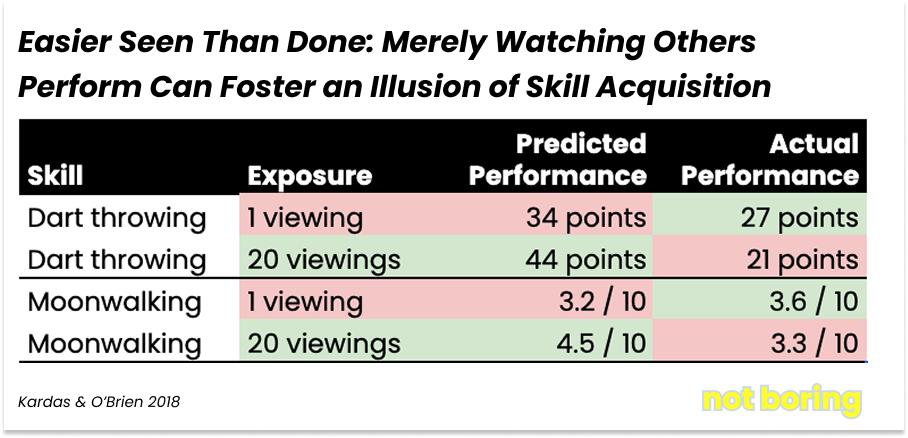 It’s kind of like how reading lots of books makes it easier to write a good book, but watching lots of golf videos doesn’t do much for actually playing golf.