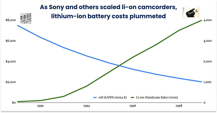 After over a decade of research on lithium-ion batteries, Sony increased their energy density by 50% by actually manufacturing them. The first to commercialize LFP, with one of its inventors as CEO, A123 failed in part because it was just a battery materials company; it didn’t control battery pack manufacturing, and couldn’t optimize the entire system.