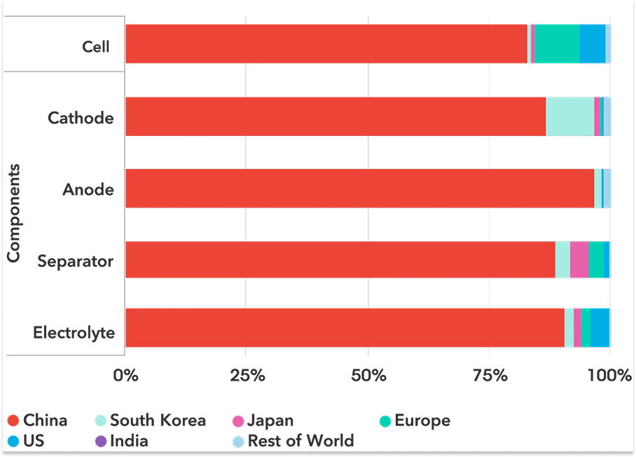Today, China produces 75% of lithium-ion batteries globally and manufactures 90% of the neodymium magnets that make motors spin. In power electronics and embedded compute, it’s rapidly gaining ground.