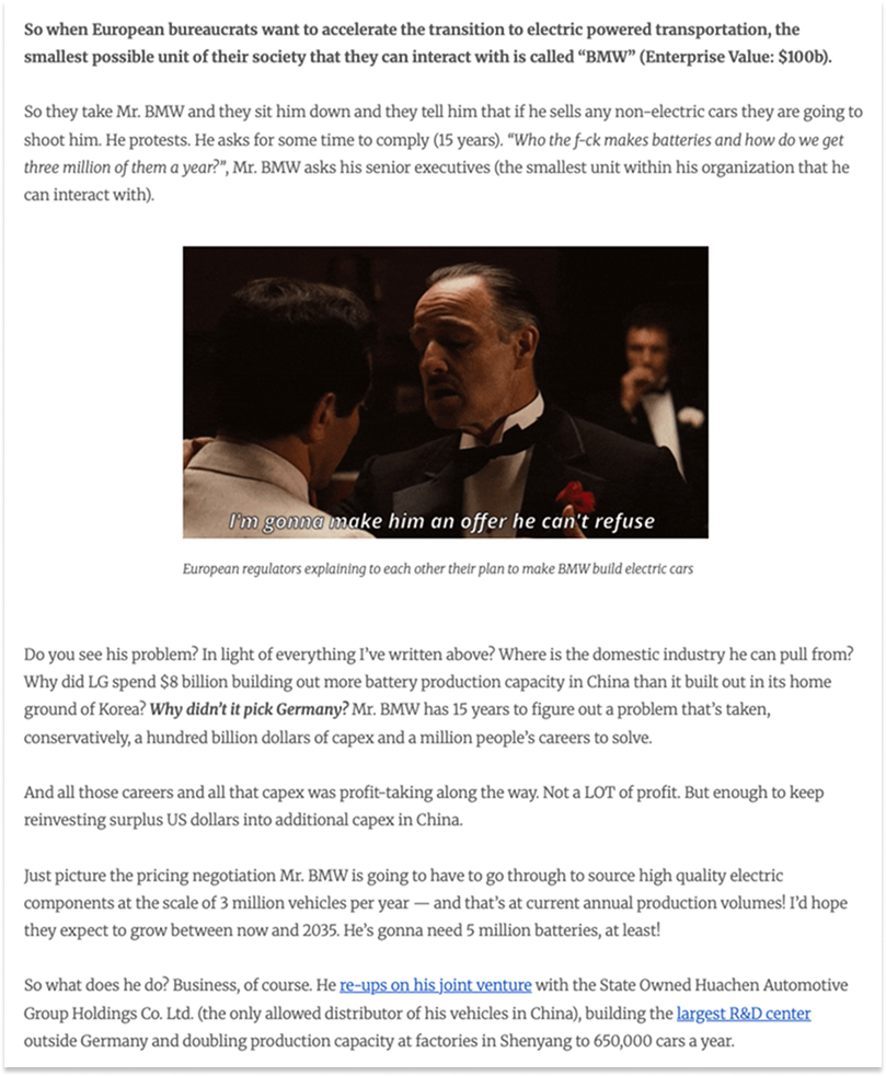 For the same reasons that I believe we’re entering a new Techno-Economic Paradigm and that Vertical Integrators are best positioned to capture value, it now makes both strategic and economic sense for companies to invest in the Electric Stack, and for the government to support their investment.
