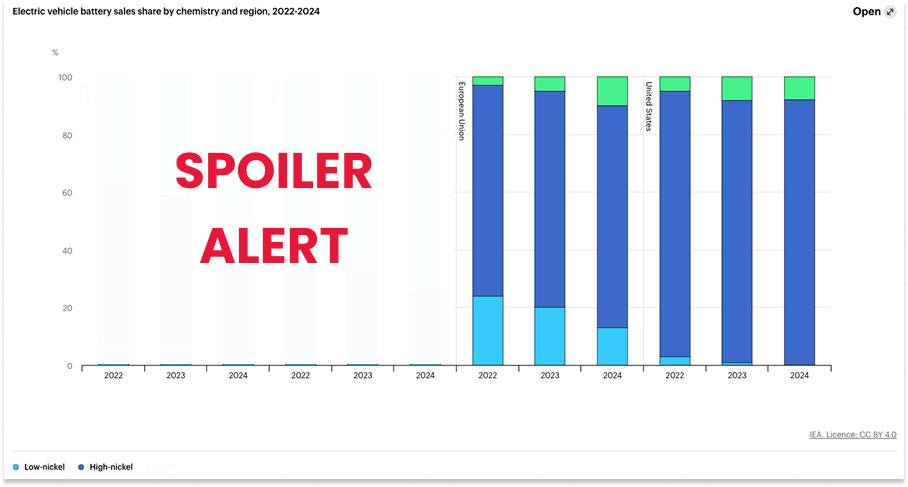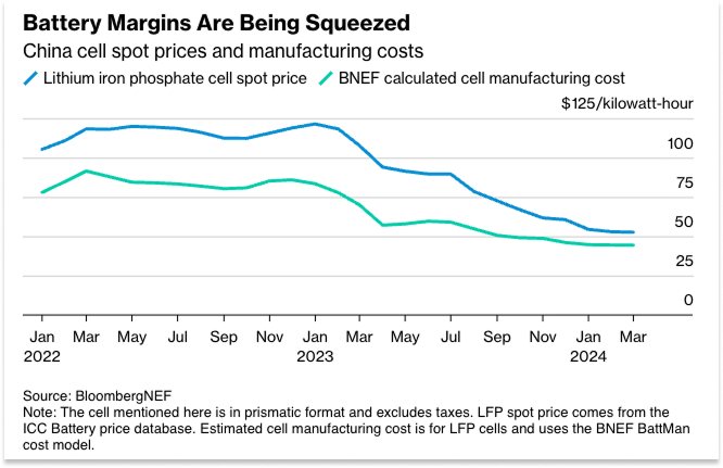 For those paying attention, this is less than half the cost in our chart because the 2024 BNEF number we use for the chart are global (not just China), include other battery use cases (not just EVs), and are at the pack-level (cell makes up ~72% of the cost of the pack).