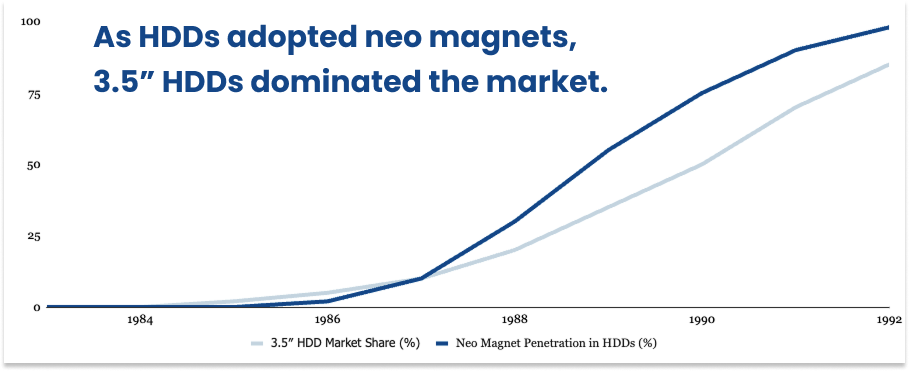 Since hard-disk drive motors began incorporating Magnequench and Sumitomo neodymium magnets in late 1980s, the cost of electromagnetic actuation has dropped 98.8% from $204/kW to $5/kW, for an annual decline of 12.5%:1