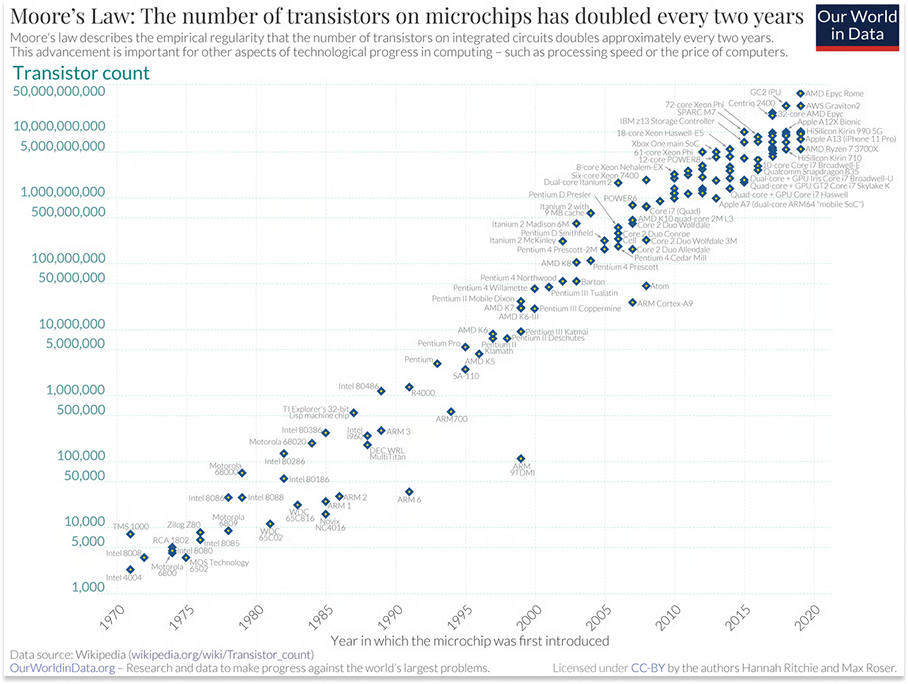 Everyone reading this is likely familiar with Moore’s Law. Many of you are likely familiar with scaling laws in AI, and Rich Sutton’s associated Bitter Lesson. Somehow, as if by magic, these digital curves become self-fulfilling, their audacity attracting talent and capital that make them come true.