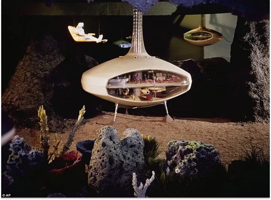 At the 1964 New York World’s Fair, GM’s Futurama II ride carried more than 26 million visitors past a vision of the near future. Alongside the lunar base and the Antarctic weather station, guests saw ocean-floor oil rigs, submarine trains hauling minerals to shore, and Hotel Atlantis, a sub-oceanic resort around which vacationers explored in various personal oxygenated craft.