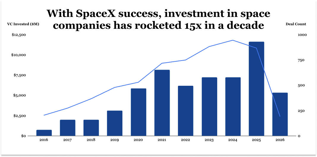 Once again, space is the case study. For fifty years, launch was owned by a small cohort of cost-plus primes – Lockheed, Boeing, and Northrop Grumman – whose economics depended on expendable rockets, government contracts, and scarcity. Then a new generation showed up, looked at the same physics, and decided that if you vertically integrated the supply chain, built for reusability, and priced for scale instead of scarcity, everything changed. That cohort, led by SpaceX and including Rocket Lab, Astranis, Planet Labs, Relativity, Varda, K2, and far too many to list, has a name now: New Space. As the cost of a kilogram to orbit fell by more than an order of magnitude, entire industries, including Earth observation, satellite-IoT, constellation broadband, and even space drugs, space-laser energy, and orbital data centers became possible and potentially profitable.