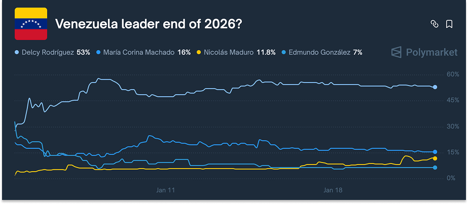 To start, a transition is not actually guaranteed. Prediction markets expect Delcy Rodríguez, the longtime Chavista official serving as interim President, to remain in power throughout the year.
