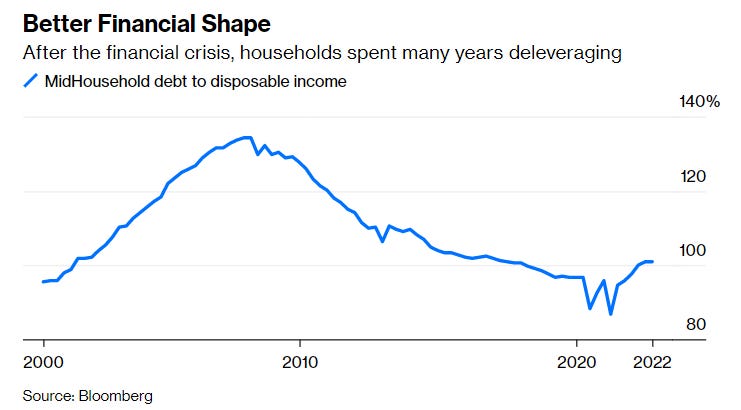Household balance sheets are in a better place today than they were in 2008 to weather a downturn. Back in ā08, everyone was levered to the gills, today less so. So if things turn bad, there is less risk that we slide into economy-wide declines in consumption.