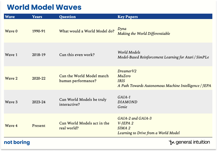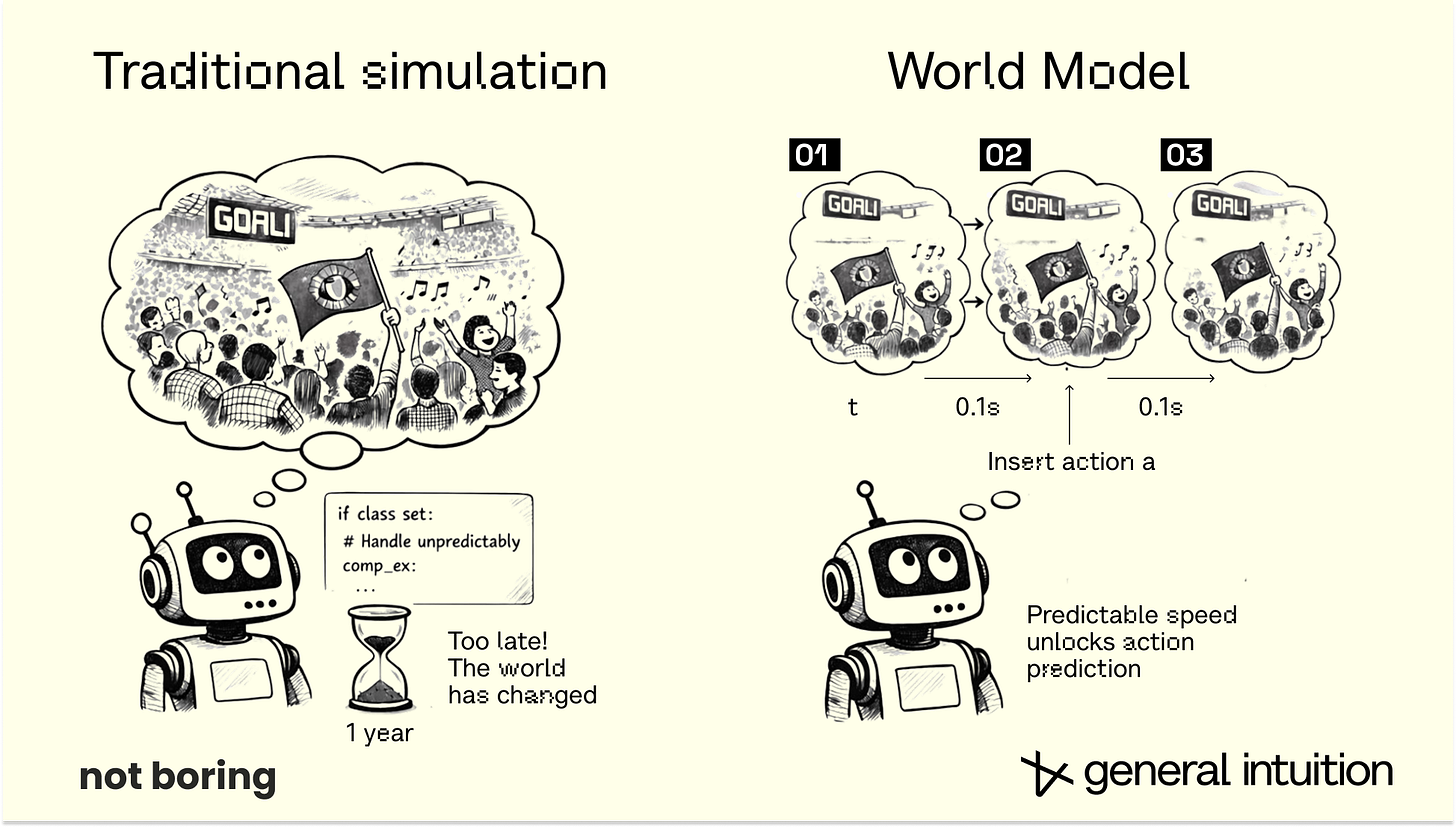 So I asked Pim to team up with me on a co-written essay about the history, theory, progress, and potential of World Models. He agreed, and both he and the General Intuition team have been incredibly generous with their time and human intelligence in helping me get up to speed, so that I can help you get up to speed.