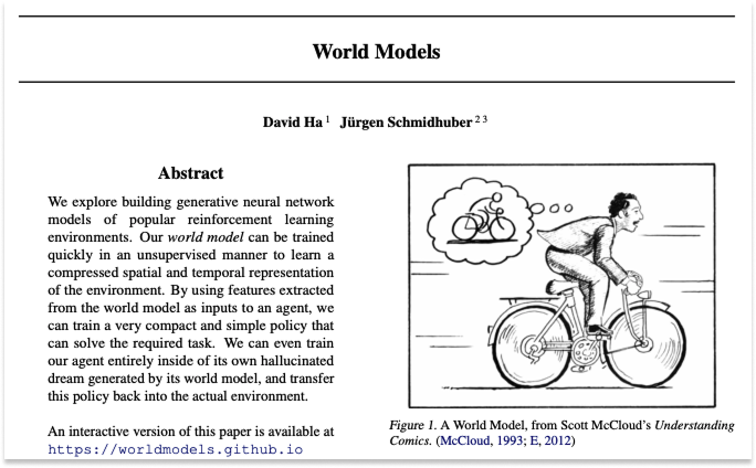 Nearly three decades later, in March 2018, David Ha (then at Google Brain) and Schmidhuber published a paper titled World Models.4
