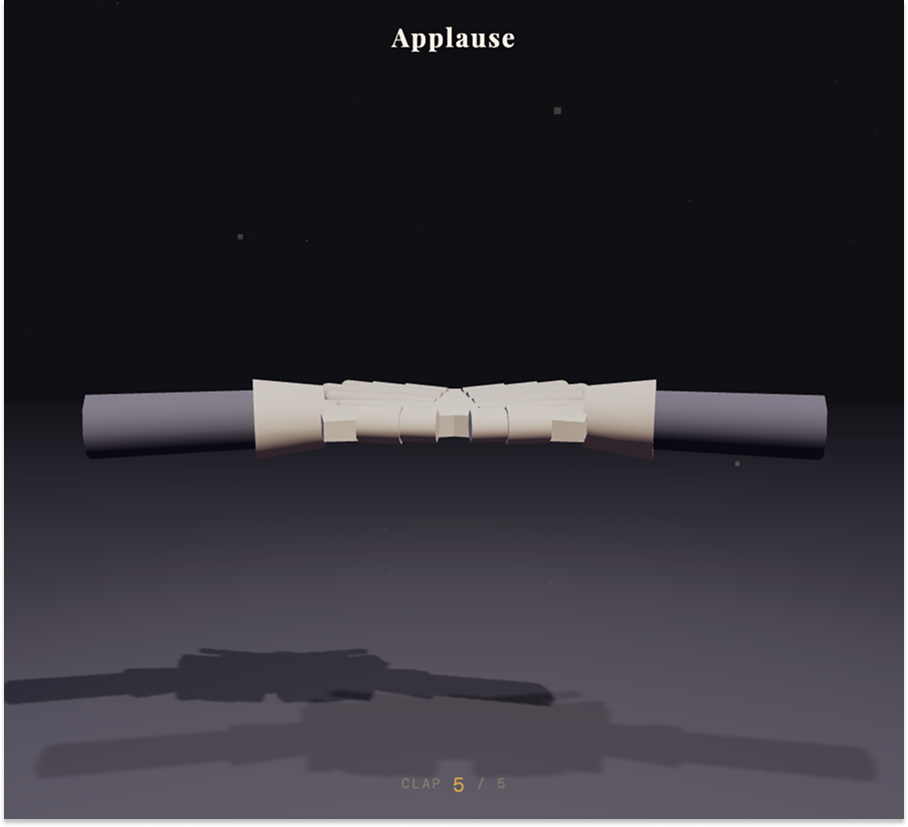 I asked Claude to “code me a simulation of hands clapping five times in a realistic environment.” It built me this. Which looks very painful.