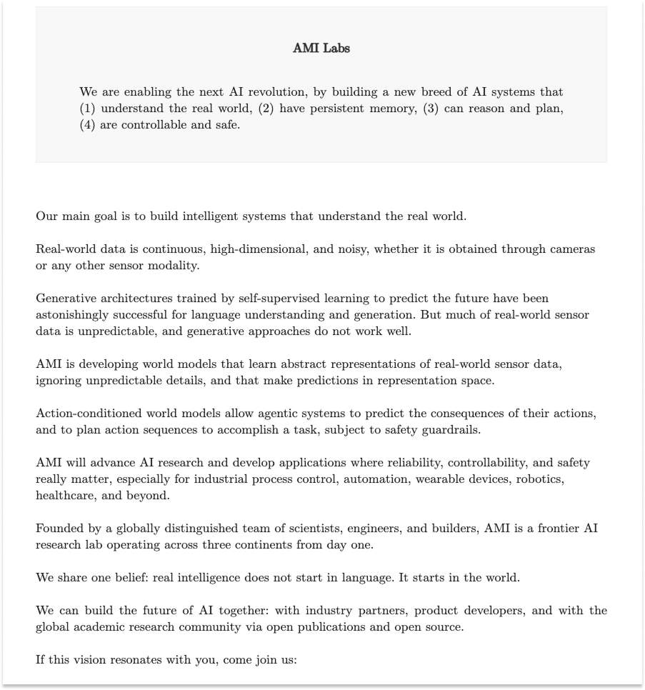 Hype is a small part of it. What we — and everyone else building in this space — believe is that World Models are the path to controlling machines in the physical world. There are differences in what we believe this path will look like. But all of us believe that the future runs through World Models.
