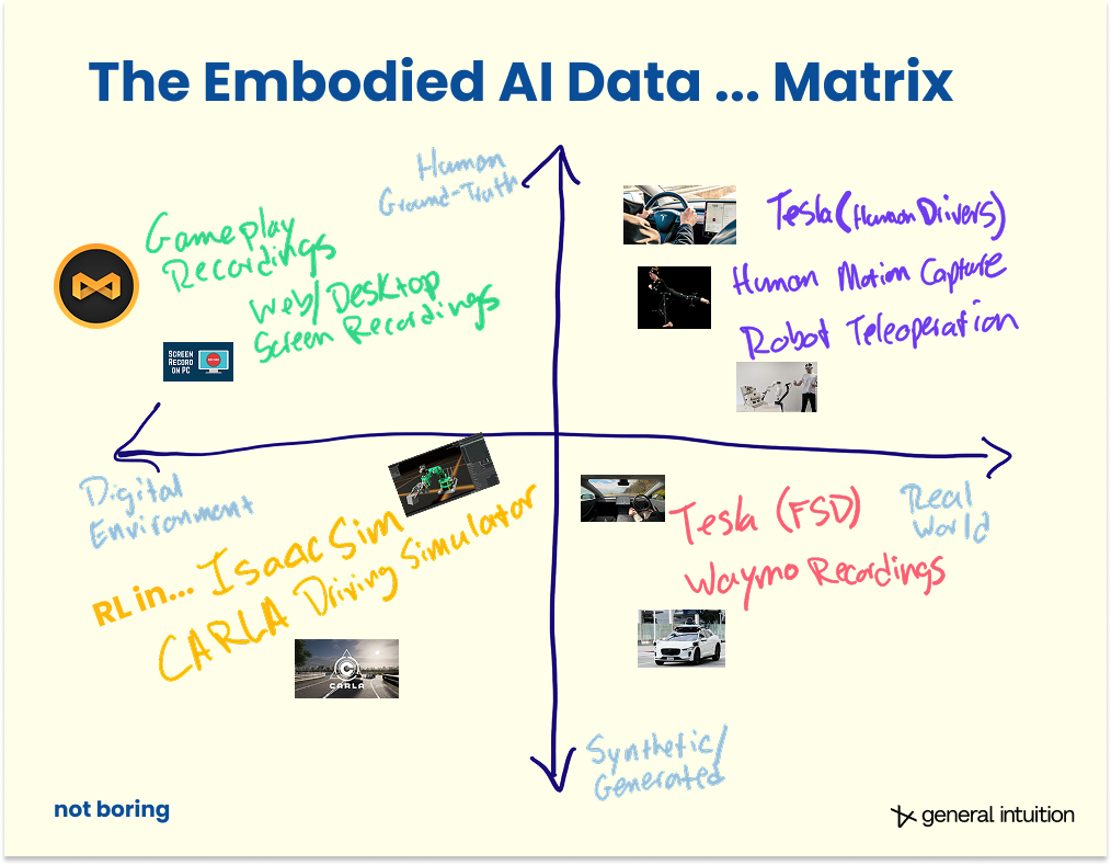 Data is the problem for any company that wants to solve embodied AI. Evan and Packy wrote about it in Many Small Steps for Robots, and it is the thing we are focused on at GI.