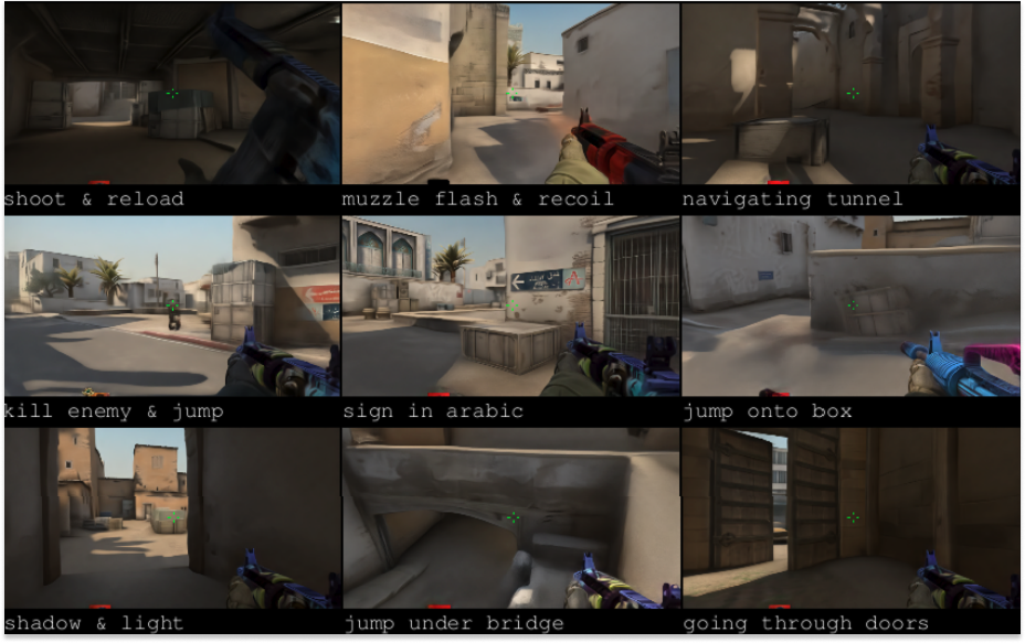 Each clip has exactly what the player saw, next to the exact player actions that followed, using many of the same systems we use to control robots today. Frames from games also have the benefit of being information-complete. Unlike real world video, where you have to account for pose estimation (estimating what the human sees, which in itself is a lossy process) — you may see things the camera does not in the real world — but not in games. What is recorded and what you see is always identical, which we think makes it better training material.